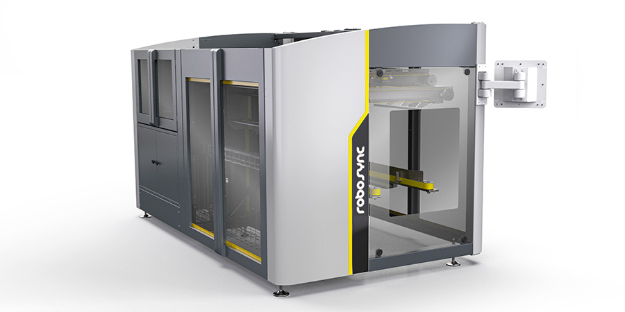 Il modulo eleva i sacchi utilizzando un sistema di vuoto. La sigillatura è effettuata con avanzate tecniche innovative, mentre la chiusura del cartone è gestita da un sistema rotante, progettati e realizzati mediante stampa 3D.